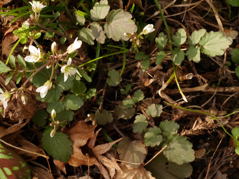Yet another woodland edible and common ornamental….Saxifraga stolonifera (yuki-no-shita), again with many cultivars.. See also http://www.edimentals.com/blog/?p=5495