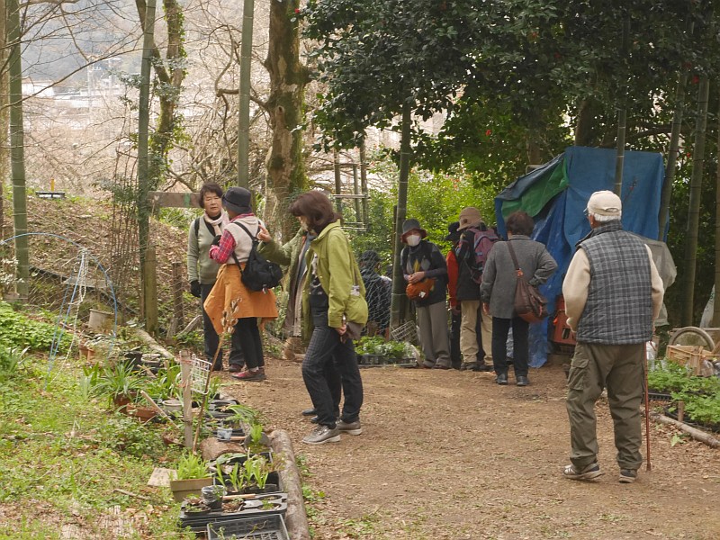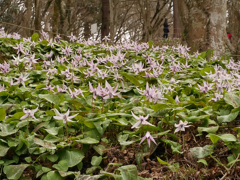 This post documents my visit with Aiah Noack of Naturplanteskolen in Denmark to the historical town of Asuke in Aichi Prefecture near to Toyota, where we’d spent the night, on 28th March 2016. Asuke and the Korankei Gorge is a popular place to visit to see the autumn colours, with some 4,000 different maples planted here since a priest started beautifying the place in 1634 (see http://japan-highlightstravel.com/en/travel/nagoya/120029). Aiah had contacted an old plant breeding colleague, Teruo Takatomi, based in Toyota, who had kindly offered to show us around for a couple of days and this was the first day of the itinerary they had arranged for us visiting natural areas and farms growing sansai (wild mountain vegetables). Two of Teruo’s colleagues took us to Asuke to see the mass flowering of katakuri (Erythronium japonicum) on Mt. Iimoriyama right next to the town. However, there was much more than katakuri in the wood as the first album documents and at the end of the walk through the woods we stumbled on a wonderful small nursery specialising in wild and edible plants! The owner ran it as a hobby and kindly invited us back to his house for tea and to see his garden (second album below).