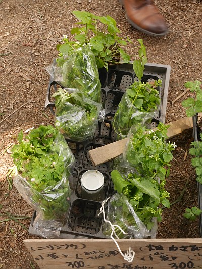 On the trail around the nature reserve, we were asking our guides whether there were any wild plant nurseries in the area…..and as if my magic a small nursery selling local wild plants, including some edibles, appeared at the end of the trail on the edge of the wood! The owner was knowledgeable about the edible plants! We called the number and the owner turned up in a little while