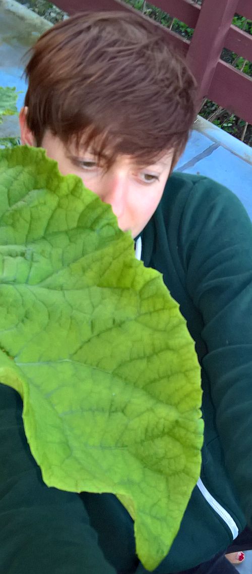 3. My lovely daughter, creator of the SAGE award about to eat a burdock leaf?