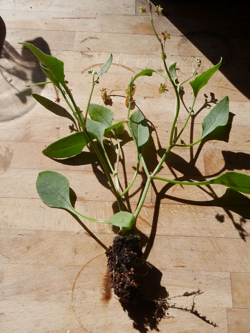 Rumex vesicarius (bladder dock) is an annual relation of sorrel from southern Europe, North Africa and West Asia. I sowed the seed in the winter in a seed tray and I finally got round to potting it up today and it was already in fruit! According to Cornucopia II, it is cultivated as a vegetable in parts of Indonesia.