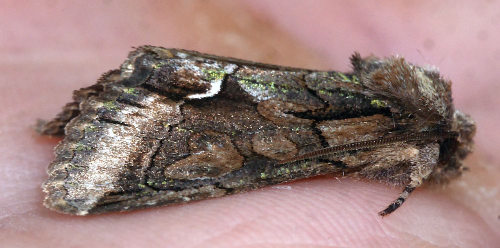 51. Pale shining brown / Vinkelhakefly (Polia bombycina); 12th July. Larval food plants: Different herbs such as docks (Rumex spp.) , deciduous trees and shrubs. NEW SPECIES FOR MALVIK MUNICIPALITY*, THIRD RECORD FOR TRØNDELAG COUNTY (only one observation further north, in 2016).