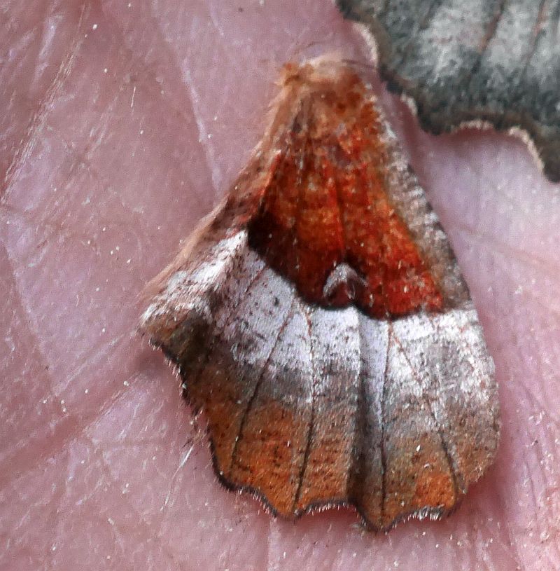 259. Chocolate-tip / rødflekkstjertspinner (Clostera curtula). Larval food plants: aspen / osp (Populus tremula) and goat willow / selje (Salix caprea) (both in the garden). NEW SPECIES FOR MALVIK MUNICIPALITY* (4th record for Trøndelag county and the first for the inner fjord area; see the new location on the map far north and east).