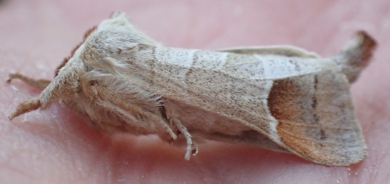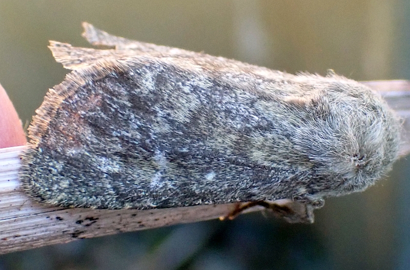 63. Swallow prominent / Seljetannspinner (Pheosia tremula); 30th July. Overwinters as a pupa underground. Larval food plants: Populus spp. amd Salix spp. (several in the garden). NEW SPECIES FOR MALVIK MUNICIPALITY* (FOURTH RECORD FOR TRØNDELAG COUNTY).