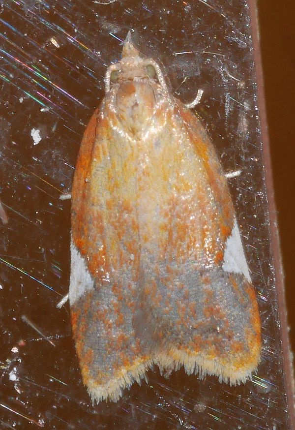 230. The notched-winged tortricid / konkavflatvikler (Acleris emargana). 26th August 2022. Larval food plants: Alnus glutinosa, Betula, Corylus, Populus, Salix caprea, Salix purpurea (all apart from S. purpurea in the garden). NEW SPECIES FOR MALVIK MUNICIPALITY*