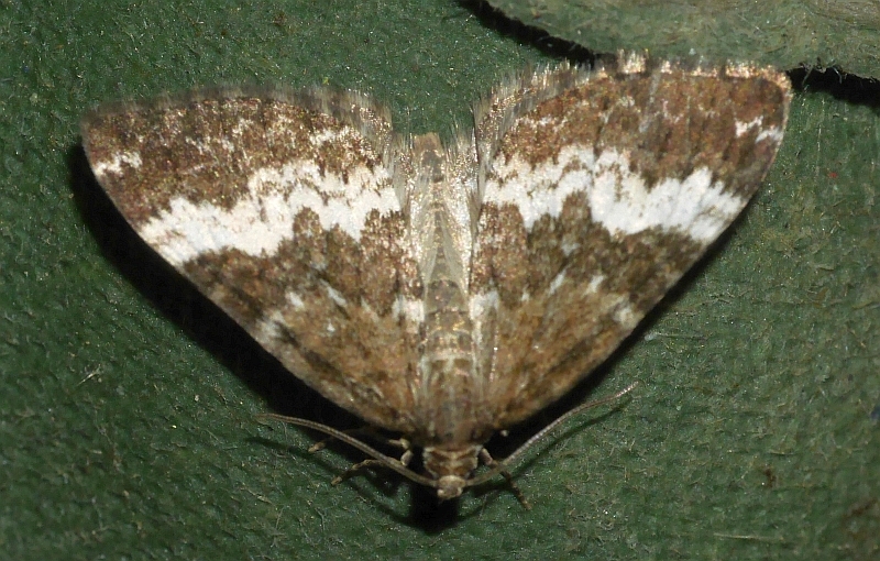 69. Garden carpet / Vårbåndmåler (Xanthorhoe fluctuata); 8th July to 15th September. Overwinters as a pupa underground. Larval food plants: Brassicaceae (cabbage family) including Garlic mustard (Alliaria petiolata), Shepherd’s purse (Capsella bursa-pastoris), Horseradish (Armoracia), Alyssum spp., Cultivated Brassica and nasturtiums (Tropaeolum). SECOND RECORD FOR MALVIK MUNICIPALITY*