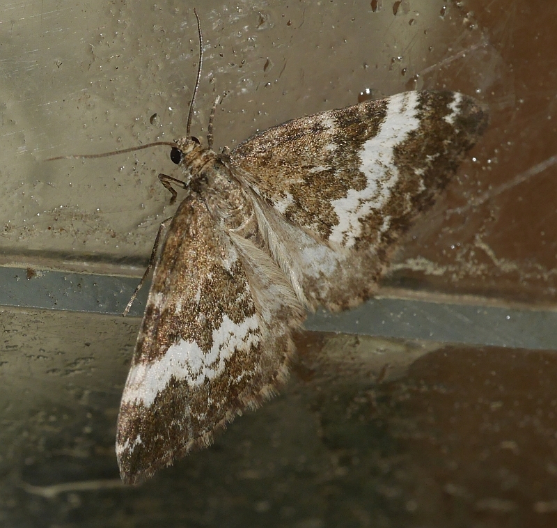 18. Silverground carpet / Hvit Båndmåler (Xanthorhoe montanata); 21st June – 8th July. Overwinters as a larva. Larval food plants: Herbaceous plants such as cleavers, hedge bedstraw and primrose (all in the garden). FOURTH RECORD FOR MALVIK MUNICIPALITY*