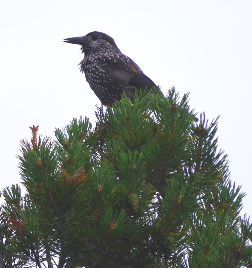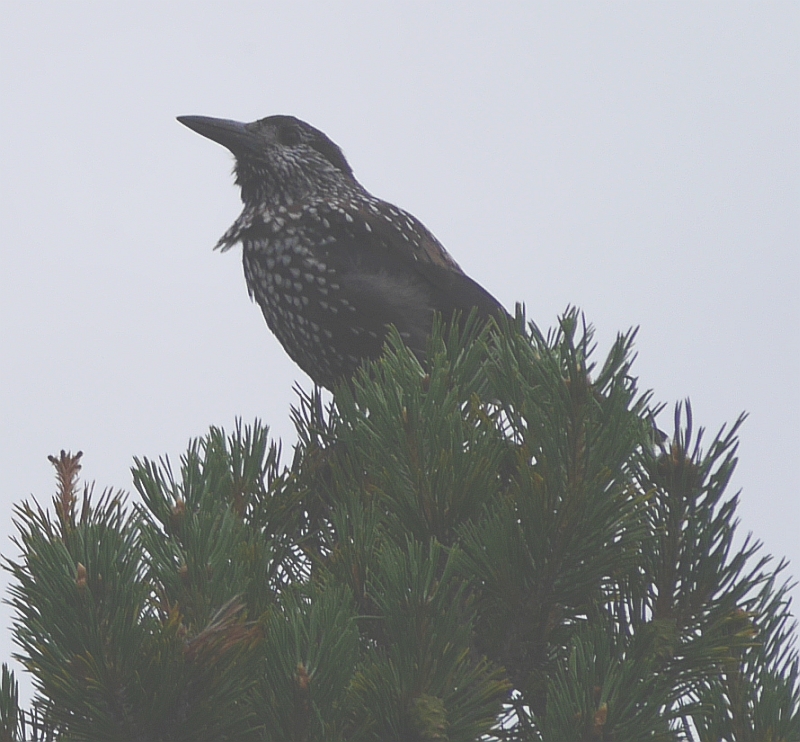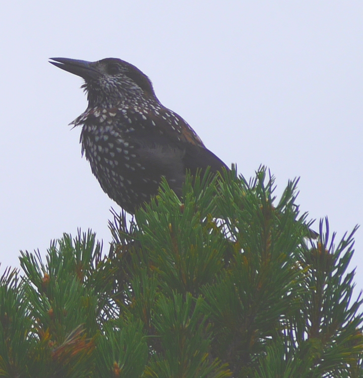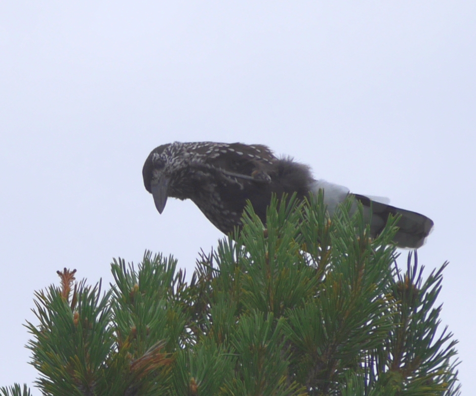 There’s always something to distract me here. This morning it’s a Siberian Nutcracker (sibirsk nøttekråke) sitting atop a pine tree in my Hazel woodland (the reason it’s here), checking out the ripeness of the nuts and declaring ownership!