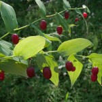 Streptopus amplexifolius is a shade loving woodland plant known, amongst others, as twistedstalk, wild cucumber and watermelon berry and has an extensive wild range including North America, Europe and East Asia. It has been used traditionally by Native Americans for its edible spring cucumber flavoured shoots and the delicious berries are now in season and I’ve been dining on them recently! I’m saving the seed as I eat! Beware that they can be laxative in large quantities, but it’s unlikely you will be able to grow that many in your forest garden!