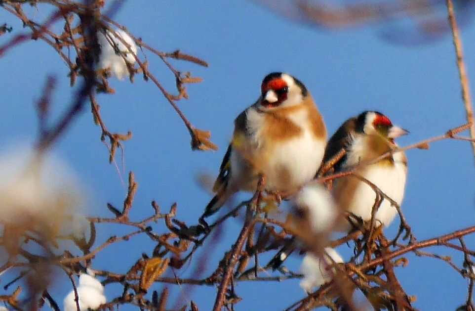 For these reasons, I put out purchased birdfood including homegrown grain and apples only when the whether is severe. Even here in the north where we have largely had subzero temperatures day and night since November, most birds seem to be finding plentiful natural food this winter. Today, greenfinches (grønnfink) and bramblings (bjørkefink) were feeding on rowan (rogn) berries, I noticed a blue tit (blåmeis) eating nettle seed, waxwings (sidensvans) were taking guelder rose (krossved), hawthorn (hagtorn) and rowan berries (films below), a blackcap was spotted eating one of the last apples still hanging on a tree, fieldfares (gråtrost) were eating hawthorn berries and, for only the second time I noticed goldfinches feeding on chicory (sikkori) seed before switching back to burdock (borre) seed. I grow both burdock and chicory for food and a bi-product of seed saving is that the birds get a share. There are also flocks of siskins (grønnsisik), crossbills (korsnebber) and pine grosbeaks (konglebit) feeding on spruce and pine seed, often in large flocks. Every evening there are maybe a thousand crows (hooded crows / kråke and jackdaws / kaie) that fly into the roost at Vikhammer, still finding grain during our short day in the snow-covered fields. There’s also a local flock of over 90 Canada Geese (Kanadagås) that are overwintering and still able to forage in the fields. There are thousands of wildfowl also on the fjord and I today noted a flock of 250 mallard (stokkand) duck resting in the bay below the house.