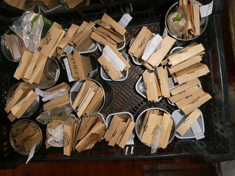 It turns out that I altogether have exactly 50 varieties in my seed vault (i.e, the cellar), some of which are only grown every 3rd year. Some are modern varieties, others Norwegian, Swedish, Danish and Finnish and UK heirlooms. Today I was sorting the packets and peas in old packets (more than 4 years old) were added to the soup mix! I recycle seed packets, so not many of these packets were originally for peas!