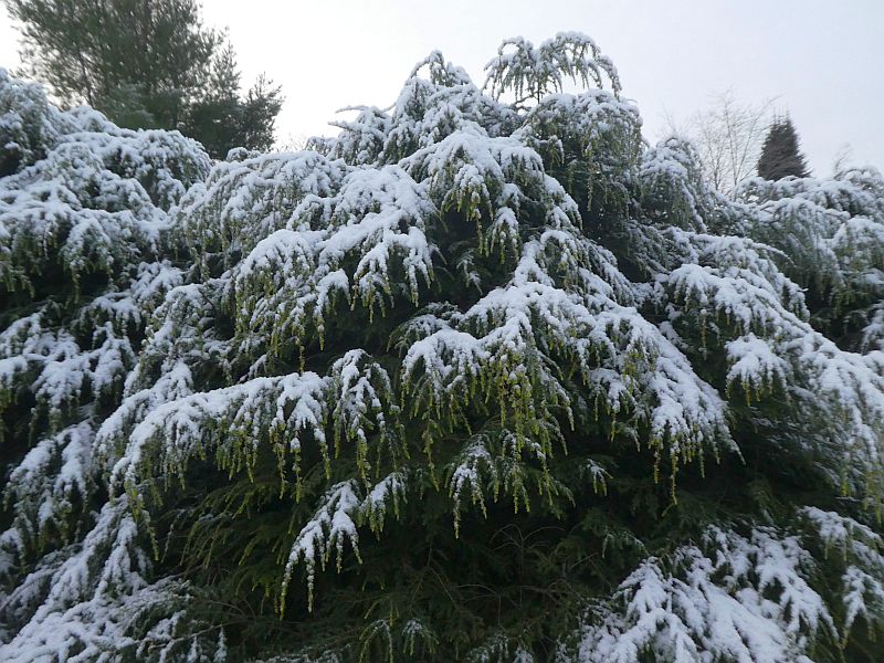 090118: Lots of twigs on the ground after the weekend storm under this larch